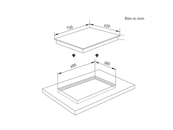 | Kích thước khoét đá | 685R x 385S mm |