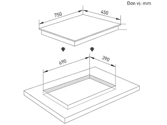 | Kích thước khoét đá | 685R x 385S mm |