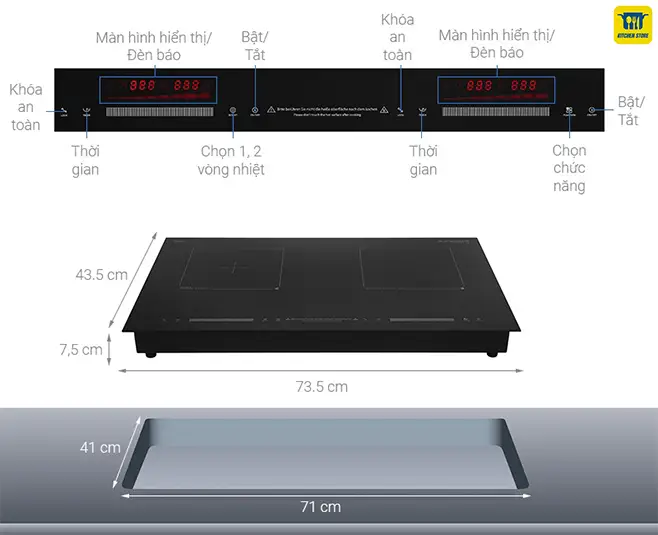 | Tính năng an toàn | Tự động tắt bếp, cảnh báo nhiệt dư, khóa an toàn |