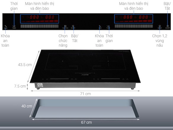 | Kiểu dáng | 01 vùng nấu từ + 01 vùng nấu điện (hồng ngoại) |