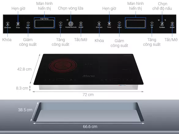 | Kiểu dáng | 01 vùng nấu từ + 01 vùng nấu điện (hồng ngoại) |