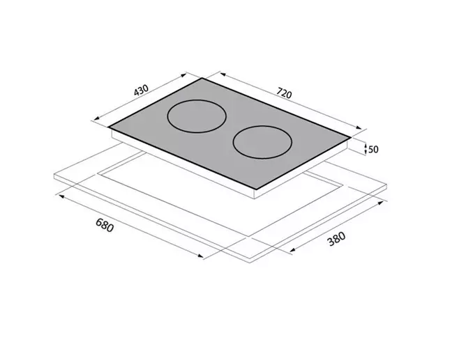 - Bếp gồm 1 vùng nấu từ 200mm, 1 vùng nấu hi-light 02 vòng