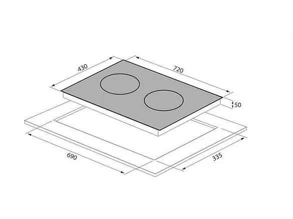 | Kích thước khoét đá | 690R x 335S mm |
