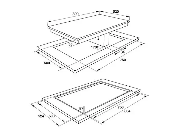 Kích thước sản phẩm Bếp điện từ kết hợp hút mùi Hafele HC-IHH80A 539.66.698