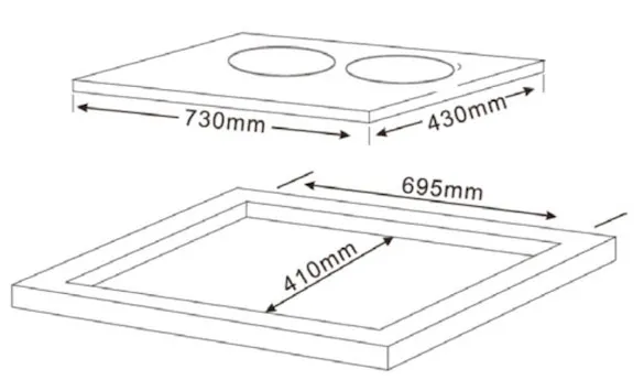 Kích thước khoét lỗ đá: 410mm x 695mm