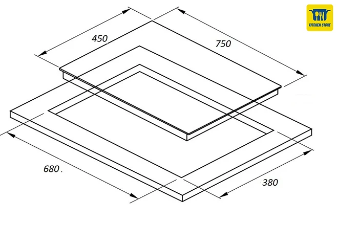 - Kích thước khoét đá 680x380mm rất phù hợp cho mọi không gian bếp nhất là những không gian bếp hẹp.