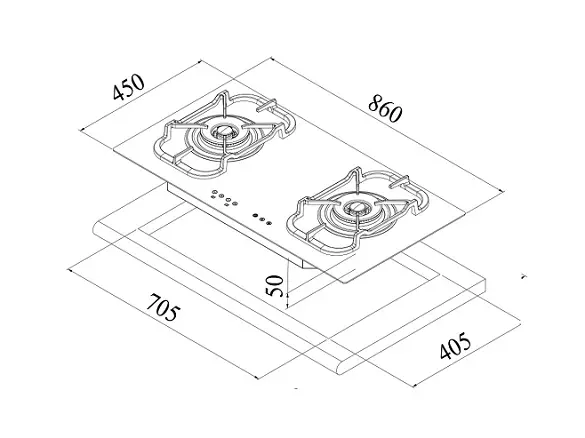 | Mặt bếp | Mặt kính cường lực, chịu nhiệt dày 8mm |