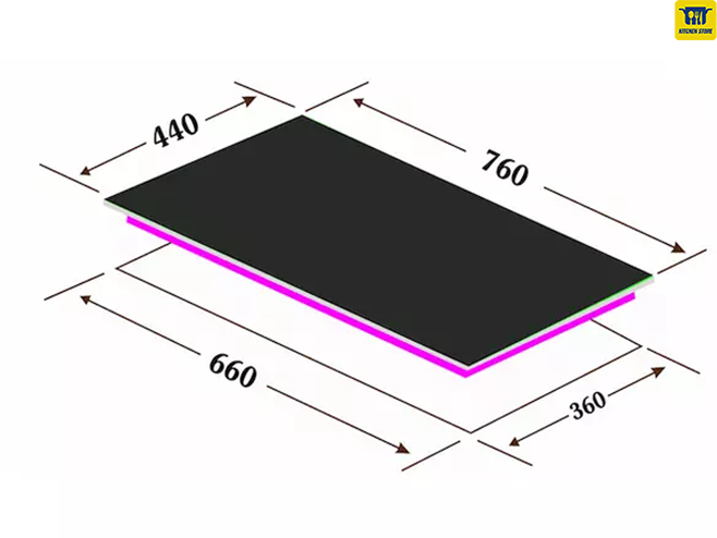 | Mặt bếp | Mặt kính cường lực, chiệu nhiệt dày 8mm |