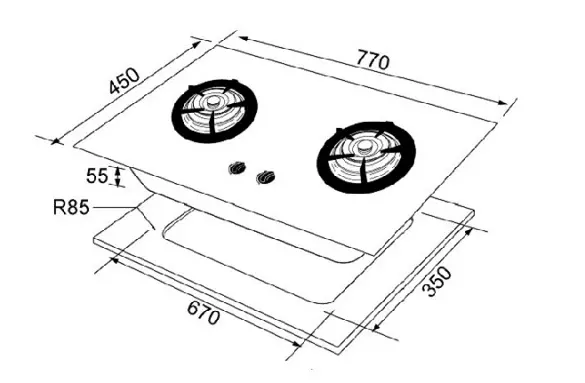 | Kiểu dáng | Bếp gas âm 2 vùng nấu |
