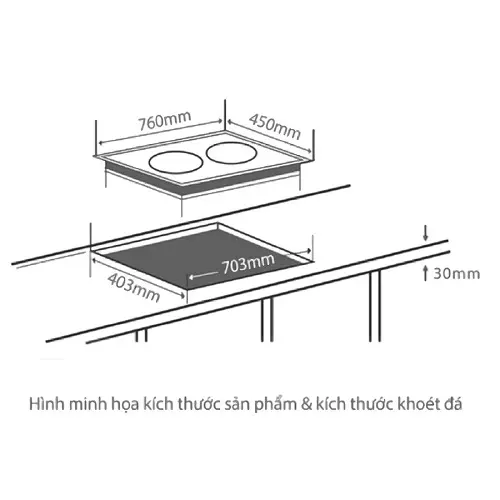 | Mặt bếp | Mặt kính cường lực, chịu nhiệt dày 8mm |