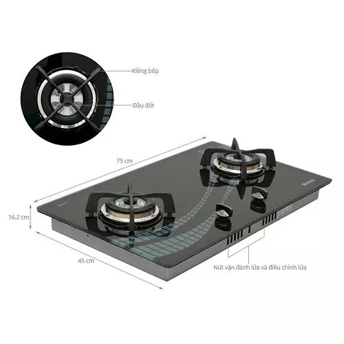 | Mặt bếp | Mặt kính cường lực, chịu nhiệt dày 8mm |