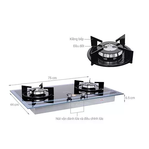 | Mặt bếp | Mặt kính cường lực, chịu nhiệt dày 8mm |