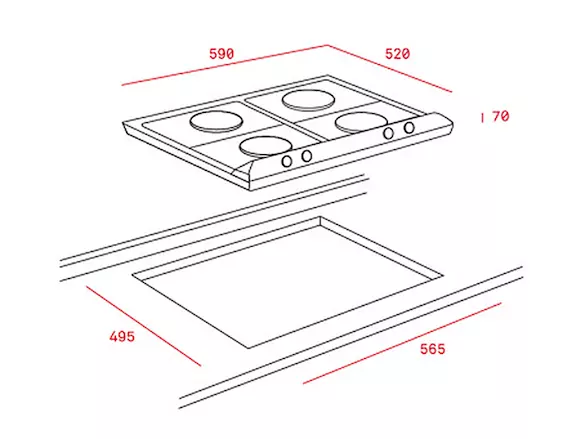 | Kiểu dáng | Bếp gas âm 4 vùng nấu |
