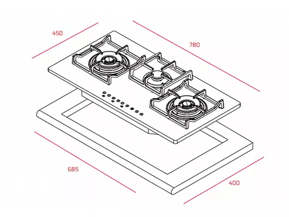 | Kiểu dáng | Bếp gas âm 3 vùng nấu |