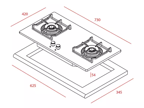 | Kiểu dáng | Bếp gas dương 2 vùng nấu |