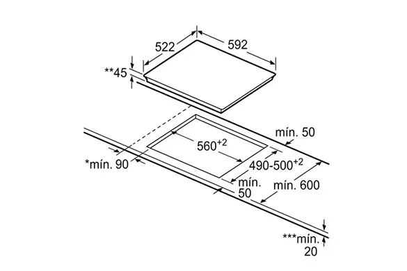 | Kích thước khoét đá | 560R x 490S mm |