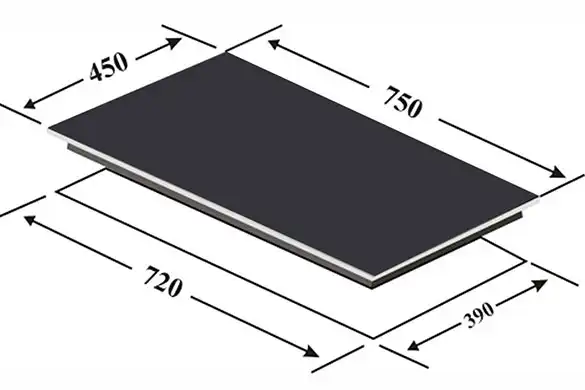 - Bếp được thiết kế theo hình chữ nhật đẹp mắt với 3 vùng nấu phân bố khoảng cách khoa học, tiện dụng khi đặt nồi nấu.