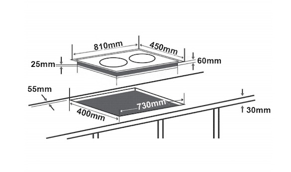 * Mặt kính màu đen, vát cạnh, sang trọng Schott CERAN, kích thước 810x450mm