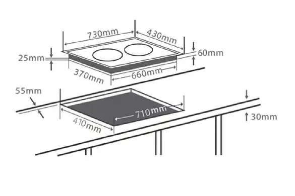 - Bếp được thiết kế đẹp mắt với phân bố khoảng cách vùng nấu khoa học, tiện dụng khi đặt nồi nấu.