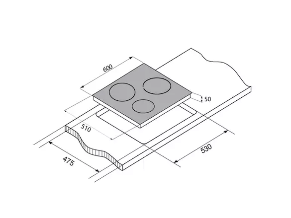 - Thiết kế mặt bếp sang trọng kích thước 60x51cm