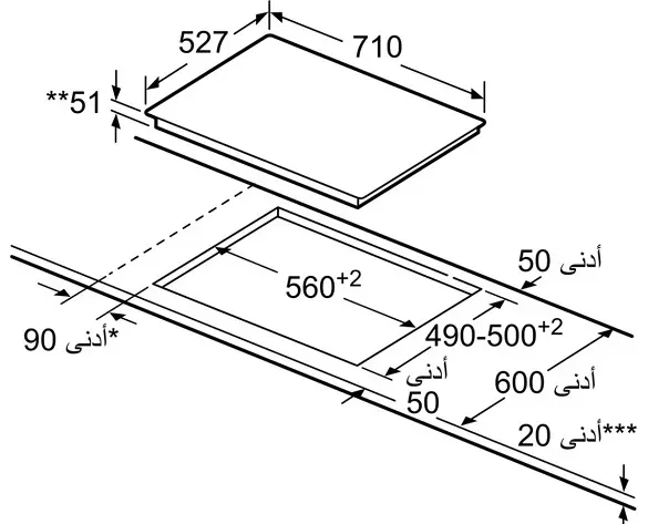 | Kích thước khoét đá | 560R x 490S mm |