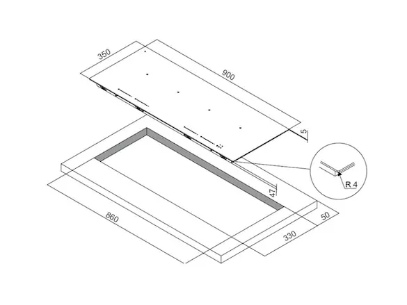 | Kích thước sản phẩm | 900R x 350S x 55C mm |
