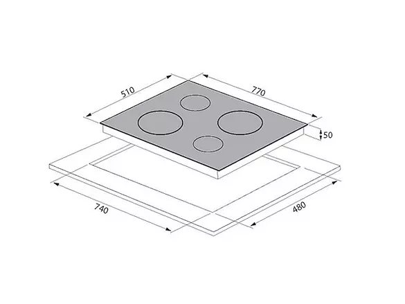 - Thiết kế mặt bếp sang trọng kích thước 77cm x 51cm