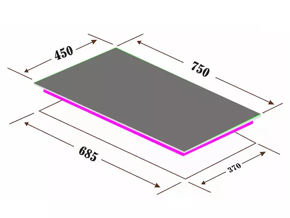 | Kích thước khoét đá | 685R x 370S mm |