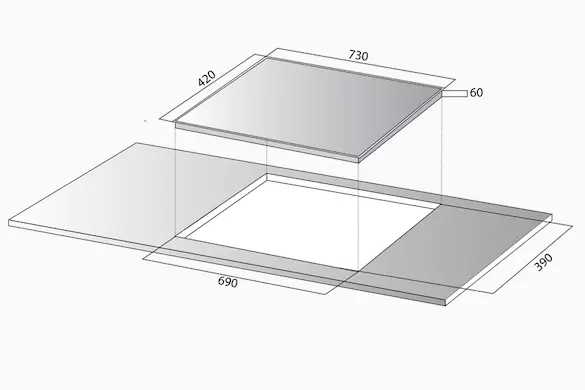 | Kích thước khoét đá | 690R x 390S mm |