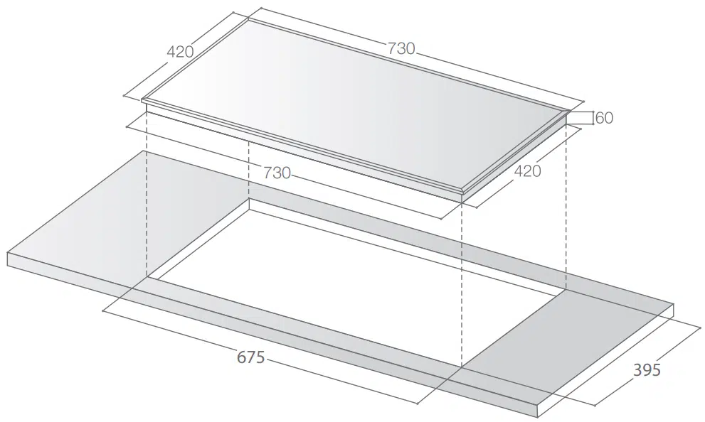 | Kích thước khoét đá | 675 × 395 mm |