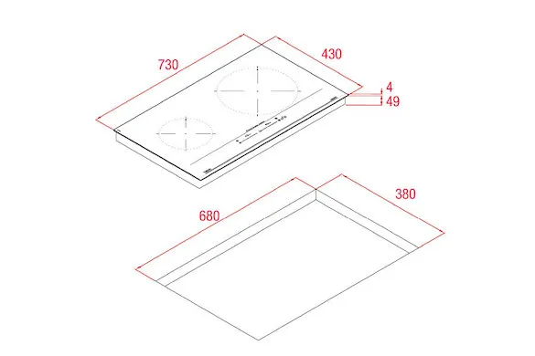 | Kích thước khoét đá | 680R x 380S mm |