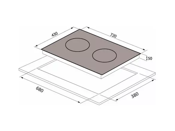 - Bếp từ âm kính 2 vùng nấu đường kính 220mm