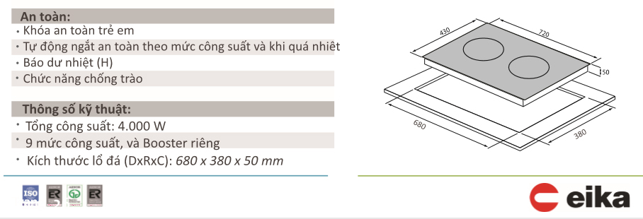 - Mâm nhiệt cảm biến EIKA (Sản xuất tại Tây Ban Nha) bền và an toàn cho người sử dụng