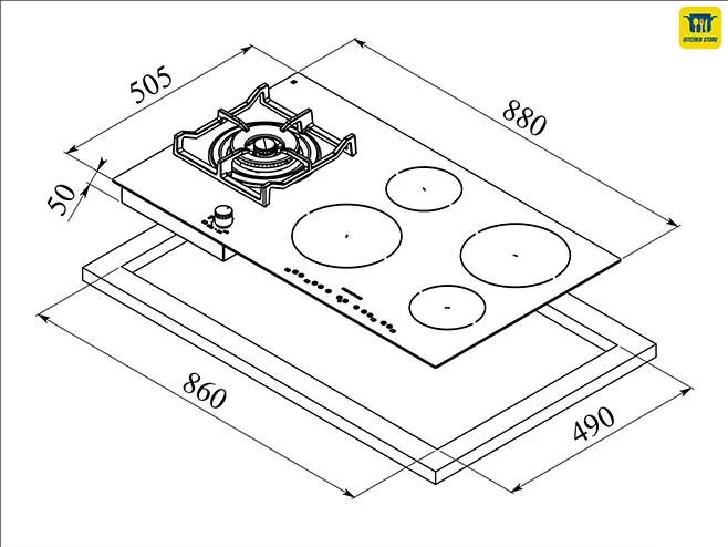 | Kiểu dáng | 04 vùng nấu từ + 02 vùng nấu gas |