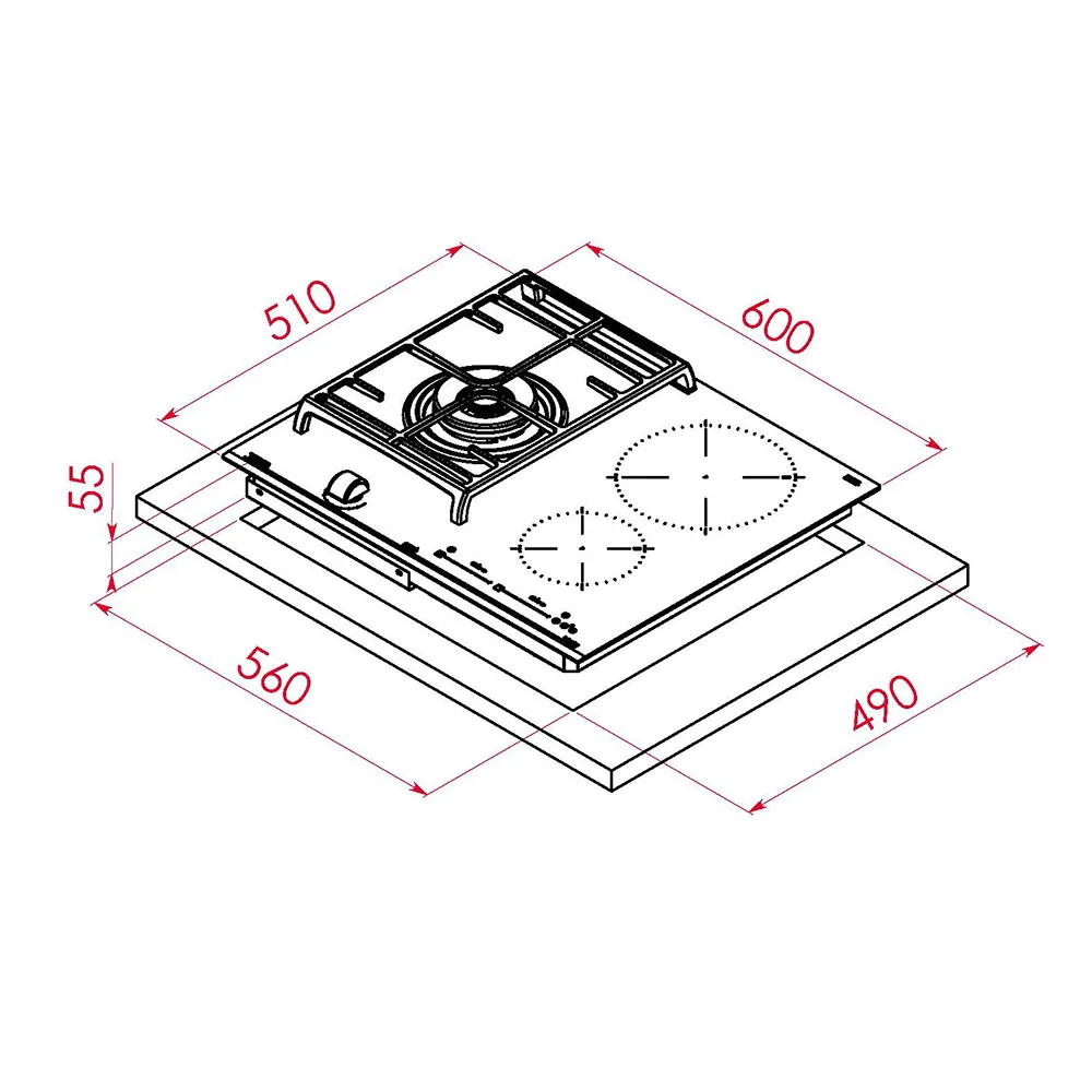 | Kiểu dáng | 02 vùng nấu từ + 01 vùng nấu gas |