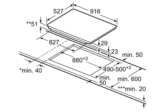 | Kích thước sản phẩm | 916R x 527S x 51C mm |