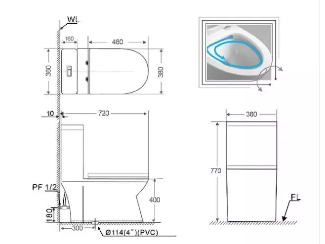 - Cửa xả: Kiểu Shipon ngăn mùi hôi một cách hiệu quả.