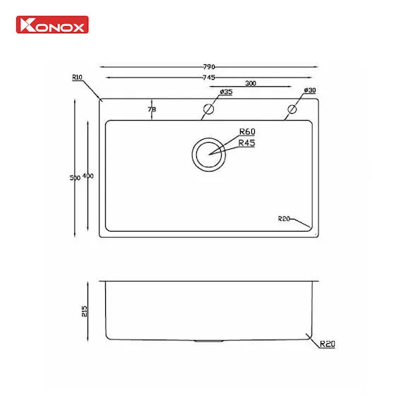 Chậu rửa bát inox Stelo 790 ra mắt năm 2025 là phiên bản chậu 1 hố mới nhất thuộc bộ sưu tập chậu rửa Turkey Series của Konox.