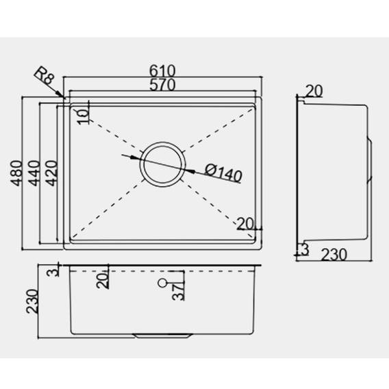 | Kích thước sản phẩm | 610R x 480S x 230C mm |