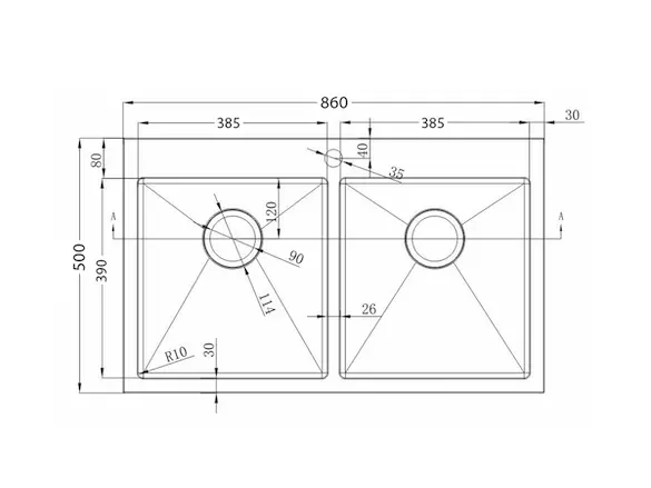 - Kích thước lòng chậu: 385x390mm / 385x390mm