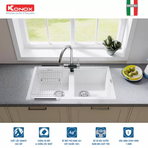 Hỏi & Đáp về Chậu rửa chén Konox Phoenix 860 White Silver