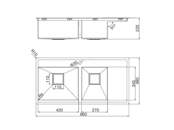 | Kích thước sản phẩm | 960R x 480S x 220C mm |