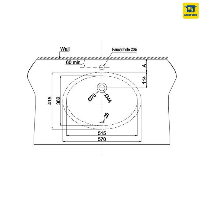 Kích thước 570 x 415 x 205 mm không quá to cũng không quá nhỏ. Khách hàng không cần phải lo lắng về vấn đề tốn diện tích; chiếc bồn rửa này có thể dễ lắp đặt vừa vặn. Sản phẩm tương thích với mặt bàn đá và thích hợp với nhiều không gian phòng tắm.