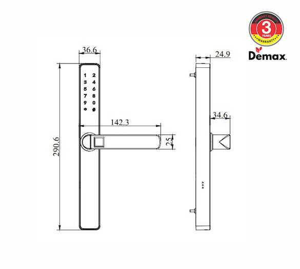 | Chức năng | Mở khóa bằng vân tay, mật mã, thẻ từ, chìa khóa khẩn cấp dự phòng chống sao chép |