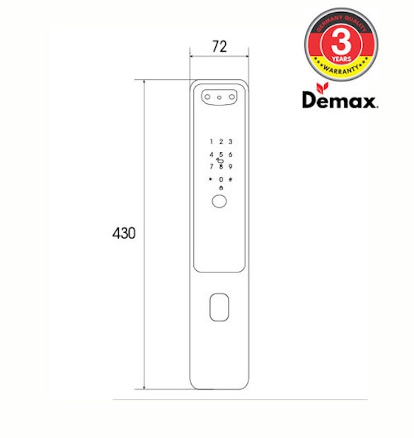 | Chức năng | Mở khóa bằng vân tay, thẻ từ, mật mã, APP điện thoại, chìa khóa khẩn cấp dự phòng chống sao chép, màn hình chuông tích hợp thẻ Micro SD |