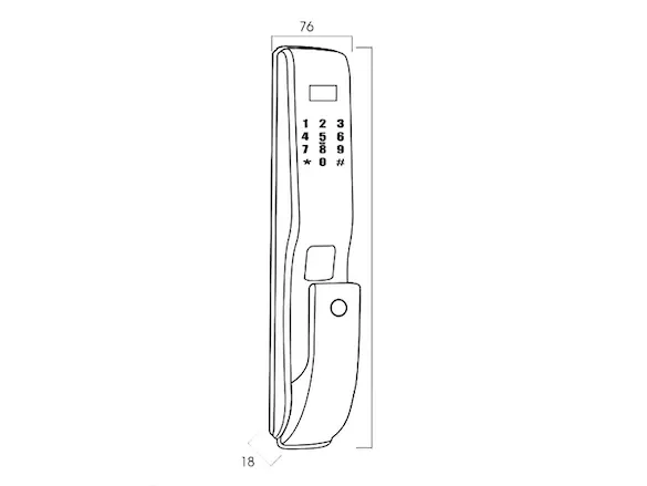- Kích thước thân khóa ngoài: R 76 x C 395 x D 18mm