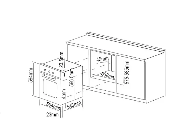 | Kích thước lắp đặt | R558 xS588 x C585 mm |
