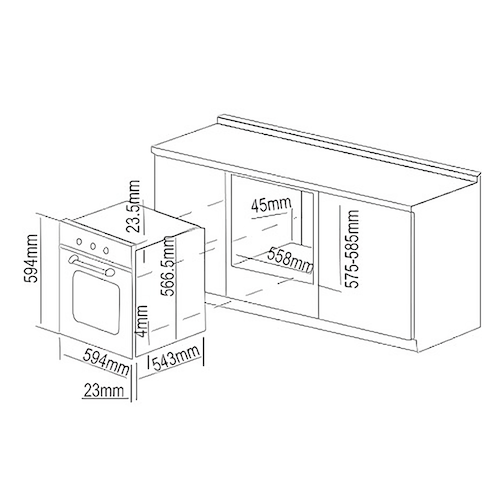| Kích thước lắp đặt | 558R x 588S x 585C mm |
