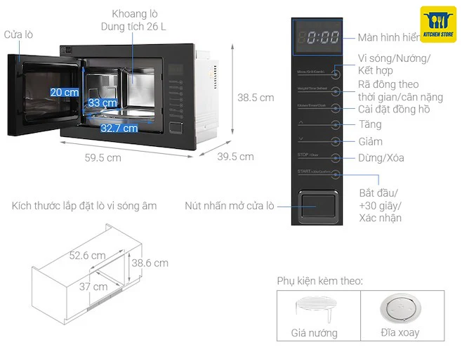 | Kiểu dáng | Lò vi sóng âm tủ |