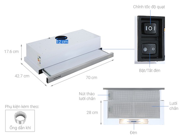Hỏi & Đáp về Máy hút mùi âm tủ Kocher K-6270 (70cm)